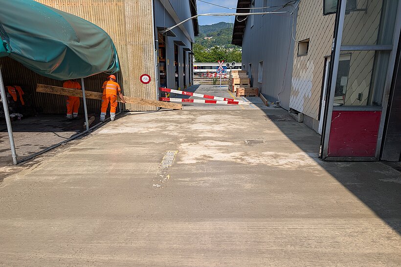 Am 22. August 2025 wurde bei einer Logistikhalle in Olten Schnellbeton benötigt. Für den Eingangsbereich wurden 12 m³ Concretum® Q-FLASH 2/20 eingebaut – mit dem Ziel, die Fläche möglichst schnell wieder nutzbar zu machen und den Logistikbetrieb nur minimal zu beeinträchtigen.